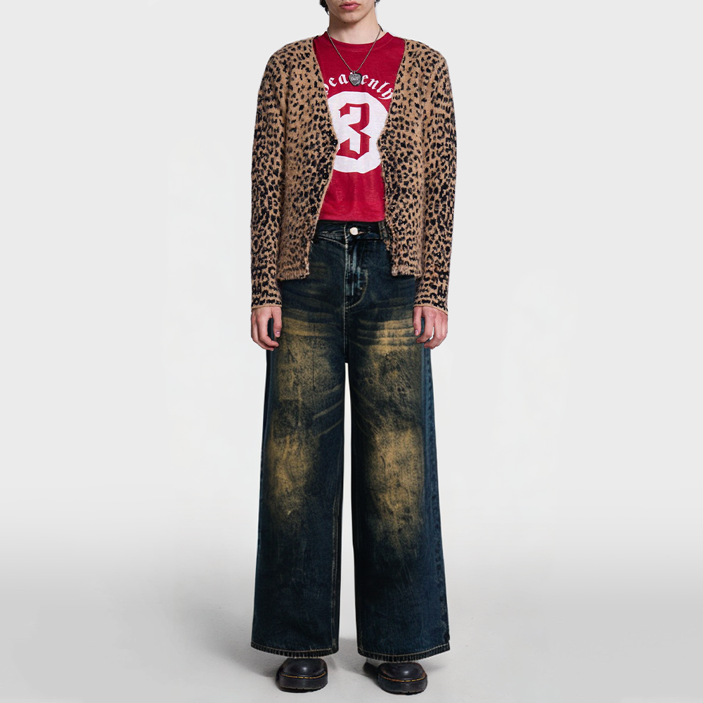 High-Street Fashion: The washed and distressed finish evokes a retro street style, pairing seamlessly with T-shirts, hoodies, or shirts to create a trendy look.