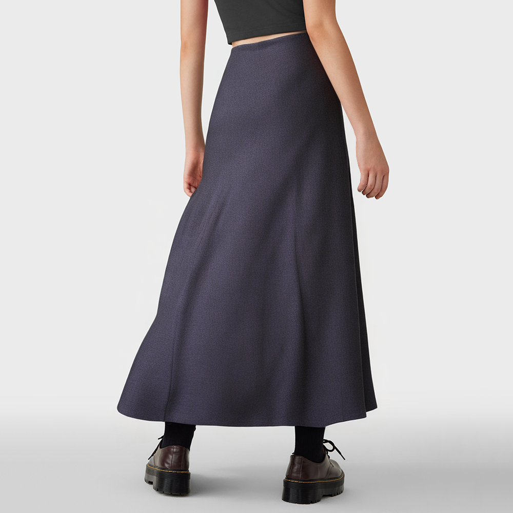 The skirt features a classic A-line cut, with the hem naturally flaring out to create smooth lines and a lightweight feel, blending retro charm with casual fashion. The woven construction ensures the skirt maintains a sturdy yet soft texture, providing a comfortable wearing experience. The solid-color design is versatile and easy to pair, effortlessly creating an elegant everyday look when matched with a T-shirt, blouse, or sweater.