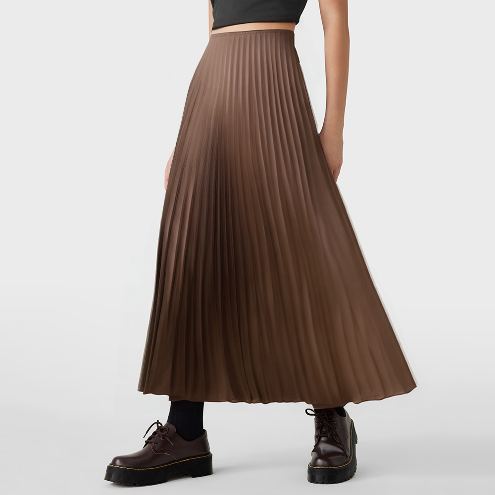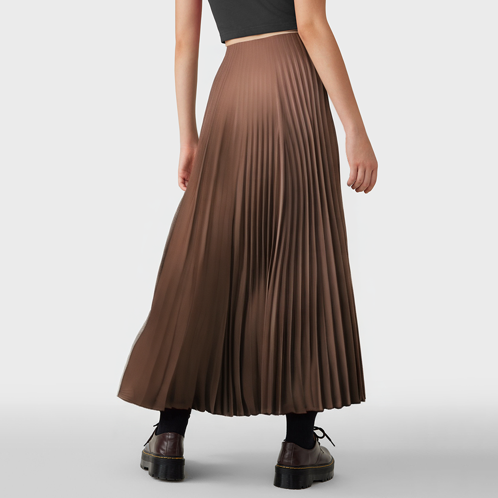This skirt is crafted from high-quality polyester fabric using a pleating technique, resulting in a soft, breathable material with eco-friendly properties. It is machine-washable and easy to care for, offering both comfort and durability. The high-waisted design naturally accentuates the waistline and elongates the legs, while the loose skirt hem paired with delicate pleats adds a lightweight drape and elegant charm, creating a look that is both retro and modern.