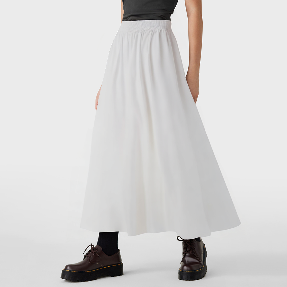 This skirt is crafted from high-quality polyester fabric using a color-woven process, resulting in a soft, breathable material with excellent elasticity for comfortable wear and easy care, making it ideal for everyday use. The high-waisted design naturally accentuates the waistline and elongates the leg proportions, while the loose skirt hem paired with pleated detailing adds a lightweight drape and vintage charm, enhancing the overall look with depth and modern sophistication.