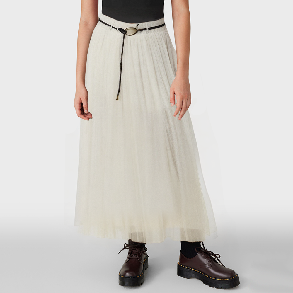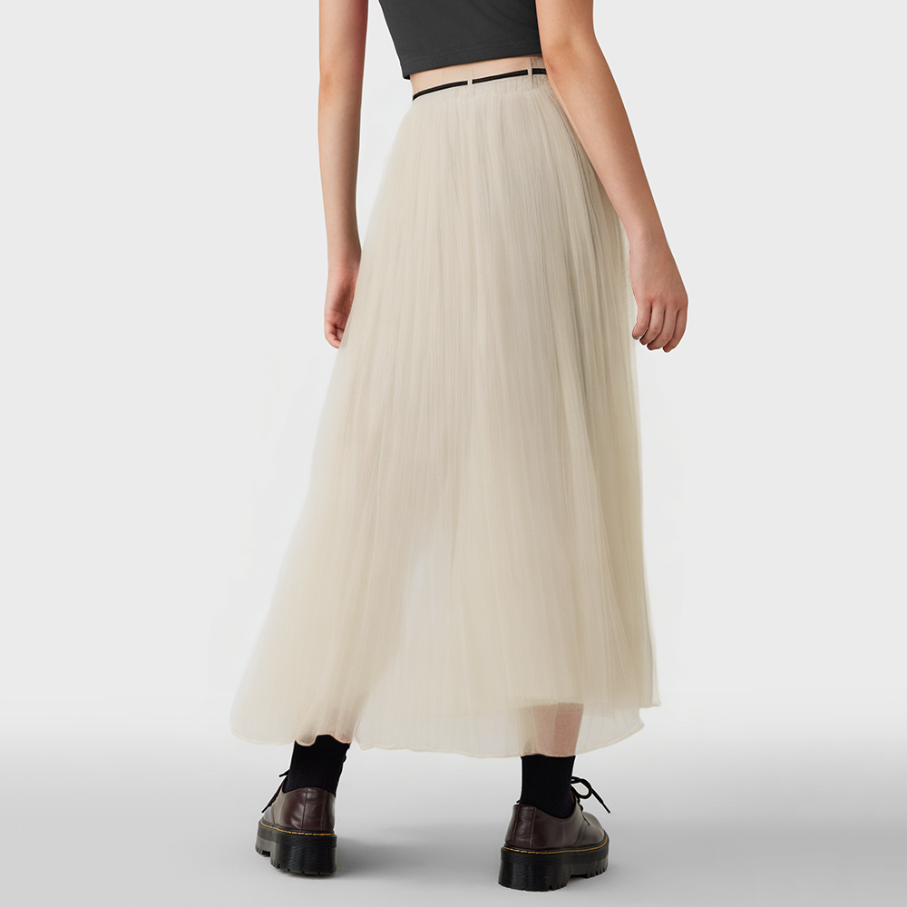 The skirt features a pleated hem, with smooth, flowing lines that add a touch of lightness, elegance, and a retro vibe, while also blending casual and sensual styles. The woven construction ensures the fabric is durable and long-lasting, while maintaining a soft feel, providing a comfortable and natural wearing experience. The simple design makes it easy to pair with various tops and shoes, making it an ideal choice for both everyday casual wear and special occasions.