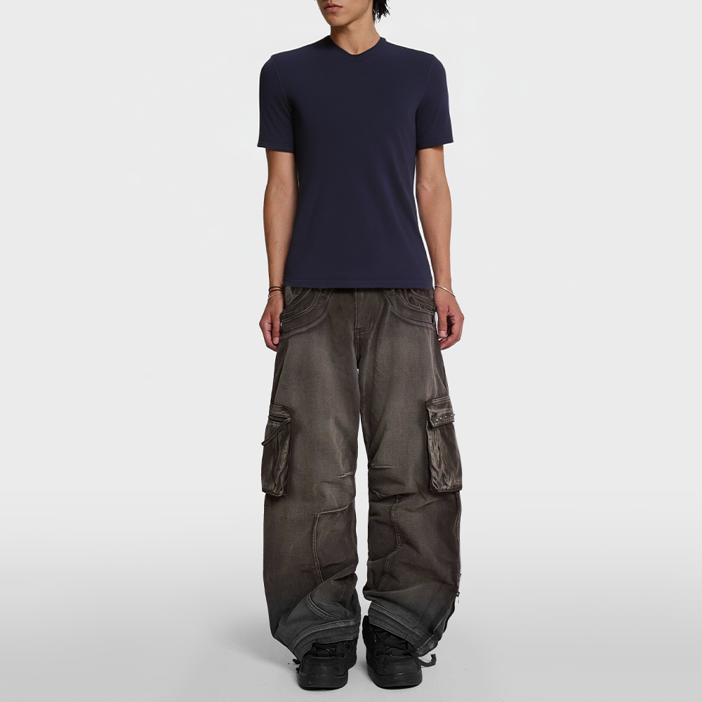 This T-shirt is crafted from premium jersey knit fabric, offering a soft, comfortable, lightweight, and breathable feel that hugs the skin while allowing for unrestricted movement. The classic V-neck design paired with standard sleeve length accentuates the neckline and shoulder proportions, giving the wearer a sleek and fashionable appearance.
