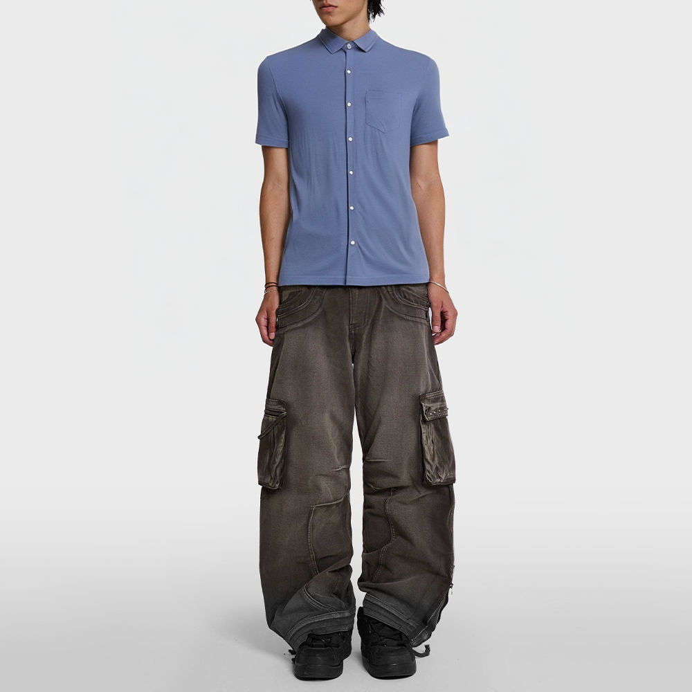 This men's short-sleeve polo T-shirt is made from high-quality coarse-knit fabric, which is lightweight, breathable, comfortable, and durable. It also features shrink-resistant properties to ensure a perfect fit even after multiple washes. The classic short-sleeve design combines with standard sleeve length, paired with a buttoned polo collar, offering a simple yet fashionable look that is easy to wear, showcasing a clean and sharp masculine style.