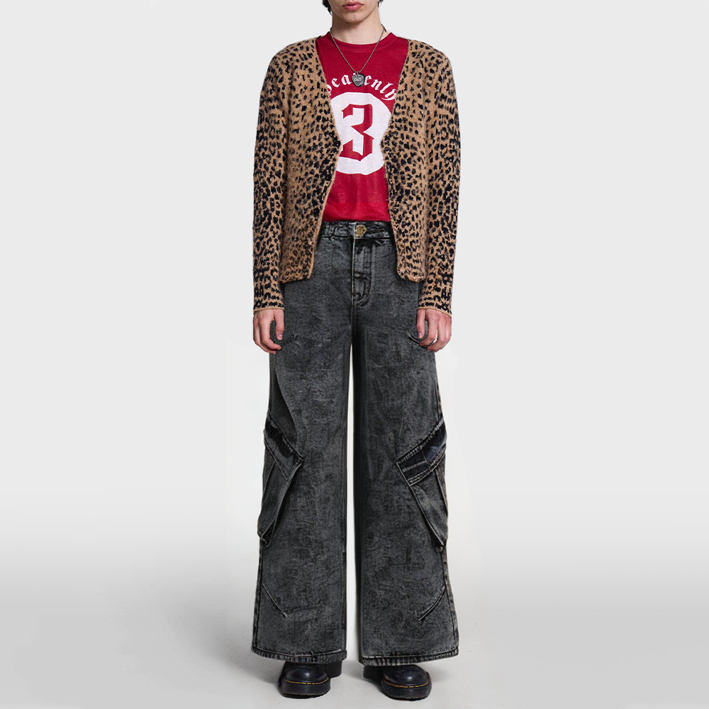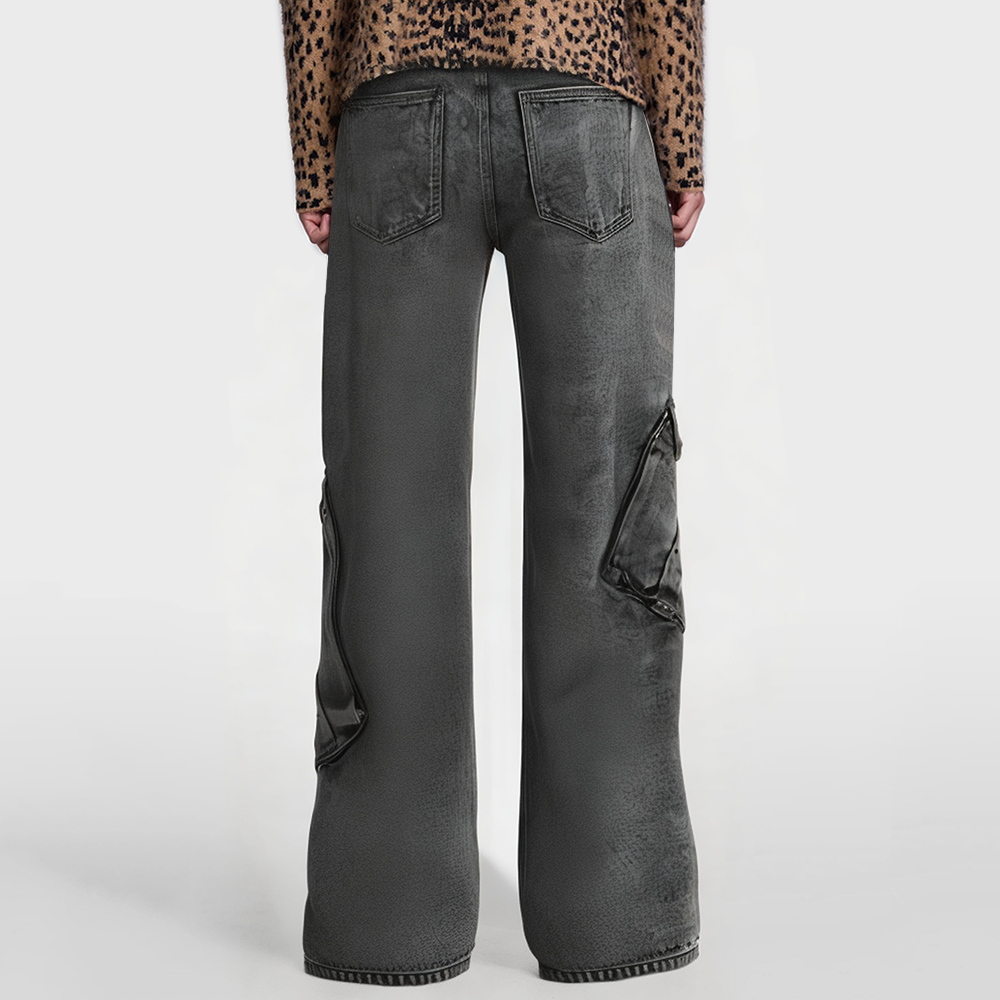 The legs feature a relaxed straight-leg design, blending retro charm with a modern edge, suitable for various body types. The surface of the jeans has undergone a washed and distressed finish, creating a natural vintage look while maintaining a contemporary casual style. The multiple pockets are both stylish and practical, perfect for storing items like phones and keys.