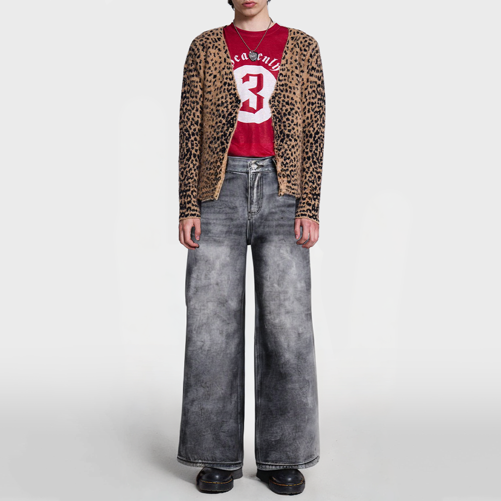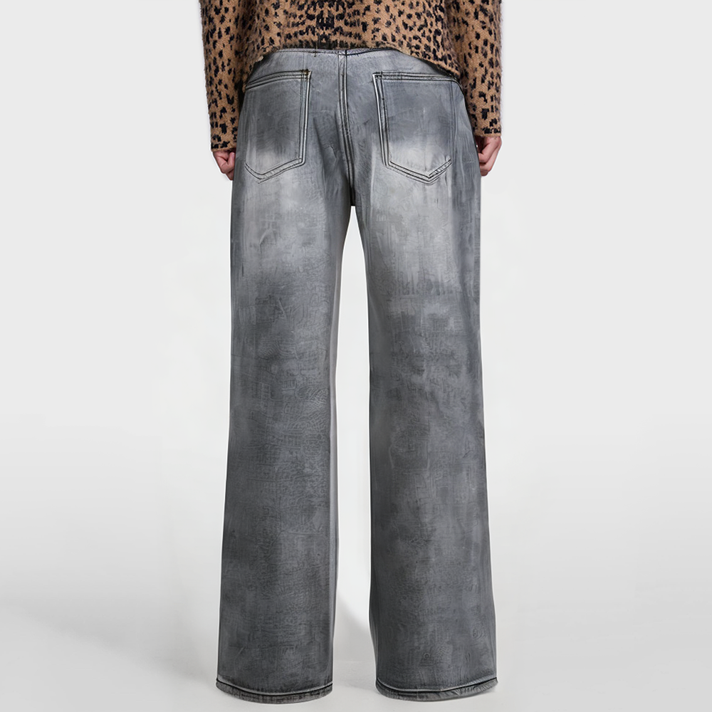 This pair of jeans draws inspiration from the fusion of trendy and retro styles. The overall silhouette features a relaxed straight-leg cut, offering comfort and ease without being body-conscious, effortlessly creating a casual and laid-back street vibe. The fabric is made from a blend of polyester and cotton satin, combining durability and abrasion resistance with a soft touch and breathability.